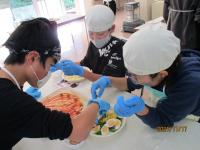 12月10日(金)6年生が家庭科の調理実習で「いろどりいため&スクランブルエッグ」を作りました。グループで協力して、野菜を切り炒めていました。私も、試食させてもらいました。野菜の甘味が感じられ、美味しくいただきました。