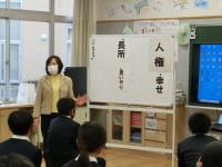 1月21日(金)人権擁護委員の3名の方が来てくださいました。3年生は、「わたしからありがとう」という絵本と「むしむしむらのこどもたち」というDVDから、みんないい所があるということを学びました。また、[人権とは友だちへの思いやりと仲よくすること」だと知りました。今日学んだことを時々思い出して欲しいです。そして、自分たちの生活に生かして欲しいです。