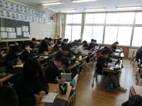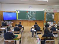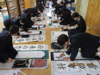 1月11日(火)3学期が始まりました。県内のコロナ感染状況から、体育館に一堂に会することはせず、各教室にてオンラインで行いました。また、各教室で校内書き初め大会も行いました。冬休み中の練習の成果が見られる作品が多く、審査に大変困っていました。