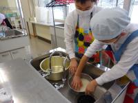 5年生が家庭科でゆでたまごを作りました。また、ゆでた青菜がどのように変化するのかも自分たちの目で見て学びました。ご飯とみそ汁の実習は3学期になります。