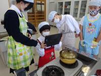 1月18日(火)5年生は家庭科でお米が炊ける様子を観察しました。自分の目で見るだけでなくICT端末でしっかりその様子を撮影していました。お味噌汁は、先生の実演を見て学びました。私も試食させてもらいました。ご飯はおこげも混ざっていて香ばしくてとても美味しかったです。お味噌汁は煮干しの出汁がしっかり効いていました。
