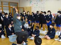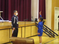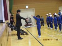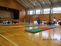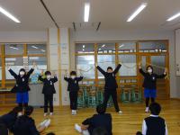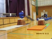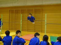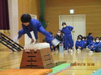 七尾市器械運動交歓会の前日である1月18日(火)、3年生は2年生に鉄棒運動、跳び箱運動、マット運動の3種類を披露しました。3年生は緊張しながらの演技でした。2年生は3年生のかっこいい姿に時々声をあげていました。
