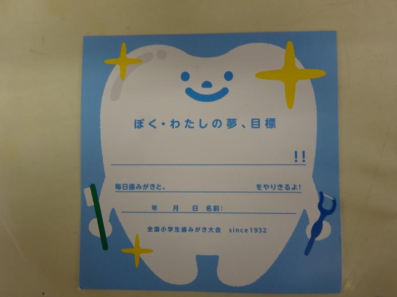 白いネバネバの正体を知ったとき,子ども達は,とっても驚いていました。また,デンタルフロスを家族にも使ってもらいたいと話している児童もいました。学習の最後には,未来宣言カードを記入しました。