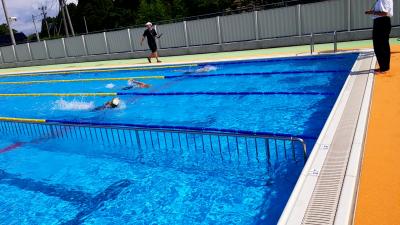 昨日、今日と4年生が水泳の記録に挑戦しています。途中で水分補給もしながらの挑戦です。ついつい隣のコースへ・・・でも最後まで泳ぎきりました。頑張りました。