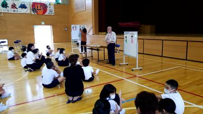 4年生は、9月30日(水)七尾市福祉課、七尾市ろうあ協会、手話サークル積木の会の方々のご協力を得て、手話について学ぶことができました。聴こえないとはどういうことなのかについて教えていただいた後、挨拶や自分の名前等の手話を覚えました。今朝、登校してくる4年生に「昨日習った手話覚えてる?」と声をかけると、多くの4年生がやって見せてくれました。