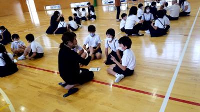 9月28日(月)、6年生は、自分達が企画した「ASAHI SPORTS FESTIVAL」(テーマ 動き出す2020)の説明を全校児童に行いました。10月8日当日は、密を避け、種目は運動場と体育館に分かれて行うこと、団は設けないが賞(スマイル賞・アクティヴ賞・フレンド賞)を設定すること等、6年生の思いが詰まった内容でした。
