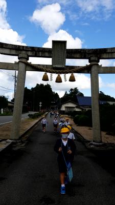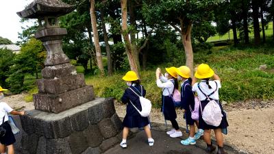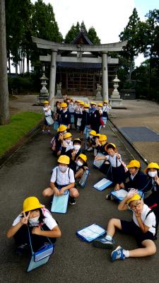 10月1日(木)、2年生は生活科の学習で町探検に出かけました。久志伊奈太技比咩神社や院内勅使塚古墳や徳田駅を探検しました。神社では、大きな木や古い木、鳥居から社への長い参道に驚きながら、撮影していました。