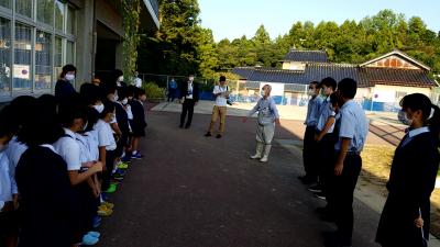10月16日、七尾自動車学校と七尾警察署の方々のご協力で自転車教室を実施しました。今回は七尾自動車学校さんが学校に来てくださる出前授業の形で行いました。3年生は、自転車は車の仲間である事や自転車に乗る時に守る事など、しっかり学ぶことができました。