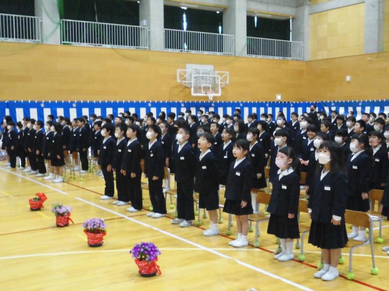 その後,全校で「ゴーゴーゴー」を歌いました。両団の声が体育館中に響き渡りました。児童の表情もやる気に満ち溢れていました。