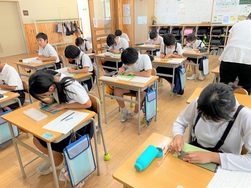 9月11日(水)に,田鶴浜高校からお二人の先生にお越しいただき,4年生に点字講座をしていただきました。