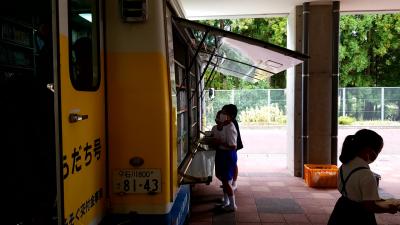 ひと月に2回、市立図書館から本とも号さんが来てくれます。1回は1・3・5年生が、もう1回は2・4・6年生が本を借ります。