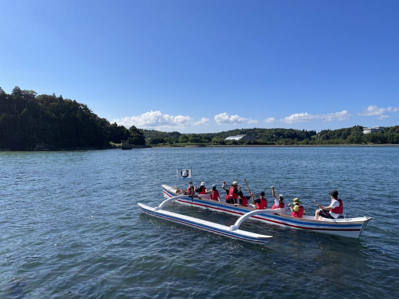 説明を聞き,まずはカヌーを運ぶところからスタート。全員で協力して3隻海に出すことができました。また,海に出てからは,グループごとにかけ声に合わせて一斉に漕ぎ,湾内を一周することができました。