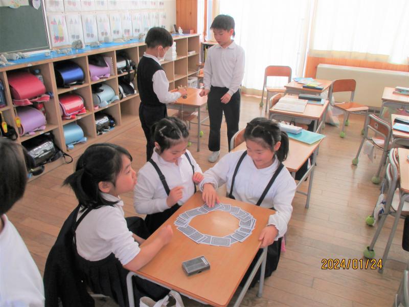 長休みも「遊びグッズ」を使って楽しんでいましたねトランプでマジックを披露してくれる子もいてびっくりです