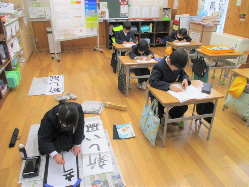 今日は「校内書き初め大会」でした。子どもたちみんな,集中して一生懸命書くことができました