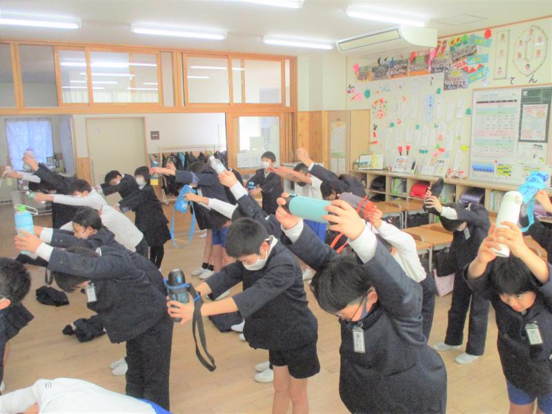 体育館や運動場が使用できず,体育もできておらず,体力低下も心配なので,「からだ元気タイム」として簡単なエクササイズを取り入れた学年もあります