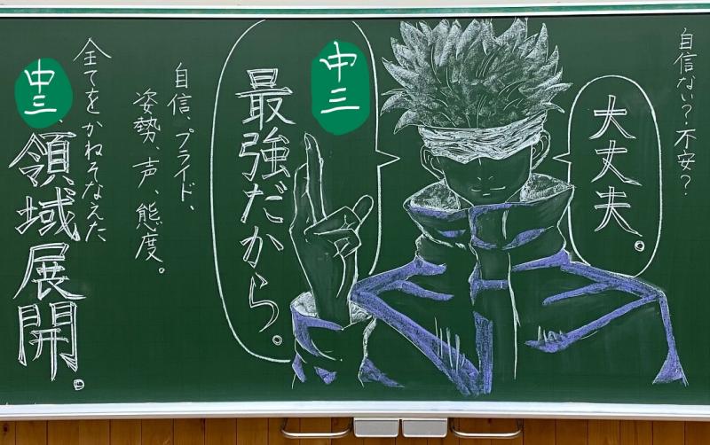 中学3年生の元担任が書いた黒板アートを本人が一部加工。