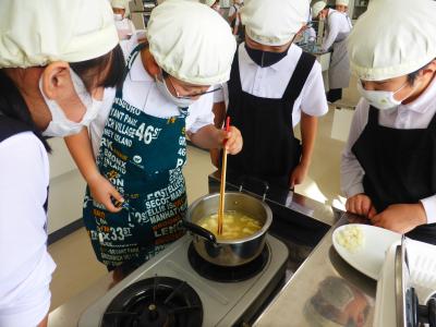 11月16日(月)5年生は煮干しでだしをとったみそ汁づくりに挑戦しました。具はグループで考え決めました。前回はご飯炊き、今回はみそ汁づくり、これで朝ごはんは大丈夫!