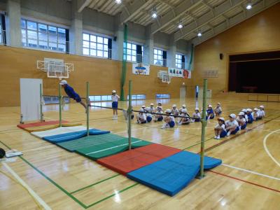 11月26日(木)1年生は、3年生の鉄棒の演技を見学しました。3年生の演技を見つめ、演技終了後には大きな拍手をしていました。今後、3年生は、2年生にも披露する予定です。