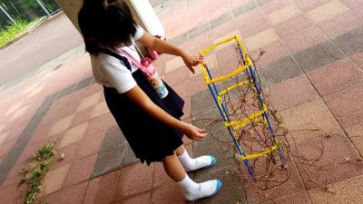 9月10日(木)、1年生は大切に育ててきたあさがおの種をとり終わり、つるを植木鉢から外す作業をしました。この後、つるは何に変身するでしょうか。