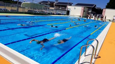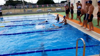 9月2日(水)昨日の6年生に続いて5年生も記録に挑戦しました。50メートル泳げる人が増えていました。明日はリレーです。