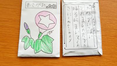 昨日、1年生が校長室に朝顔の種のプレゼントを持って来てくれました。来年、植えるのが楽しみです。ありがとう!!