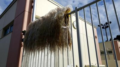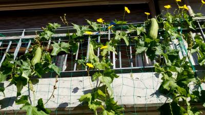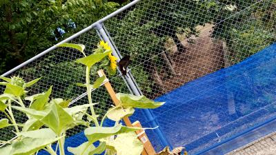 校務員さんが植えてくれたひまわりが大きくなりました。先日、アゲハ蝶も蜜を吸いに来ていました。また、今年はヘチマも実をつけました。学習のため、枯れる様子も大事。しばらくこのままです。