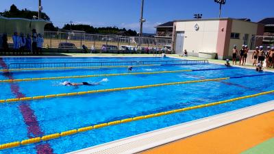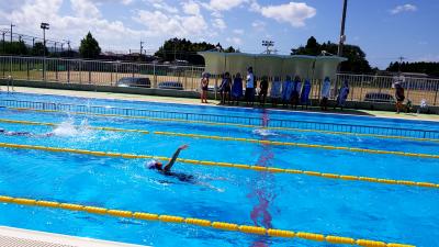 水泳学習は9月11日(金)までです。今日、6年生が記録測定をしていました。最後には男女対抗リレーが行われました。6年間の成果がしっかりと出ていました。