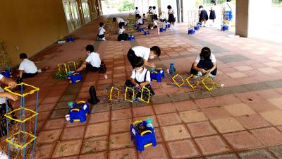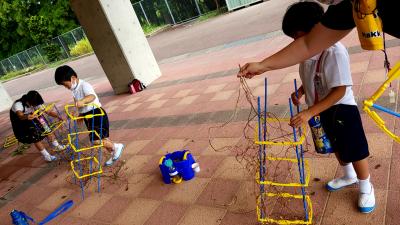 9月10日(木)、1年生は大切に育ててきたあさがおの種をとり終わり、つるを植木鉢から外す作業をしました。この後、つるは何に変身するでしょうか。