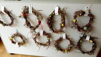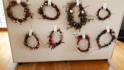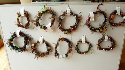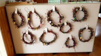 先週の木曜日に外したあさがおのつるが、こんなに素敵なリースになりました。