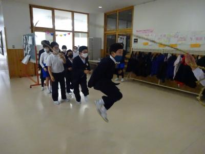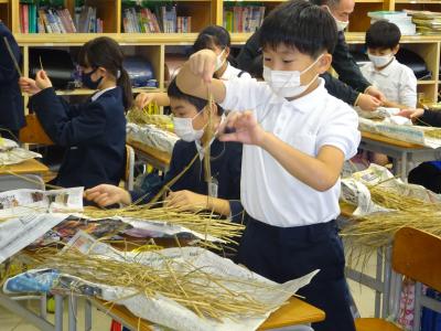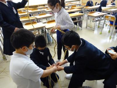 12月15日(火)2回目の縄作りがありました。1回目に揃え柔らかくしてわらをみんなで協力して編んで行きました。仕上がった縄で縄跳びをして楽しむ5年生の姿がありました。
