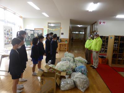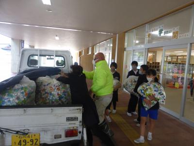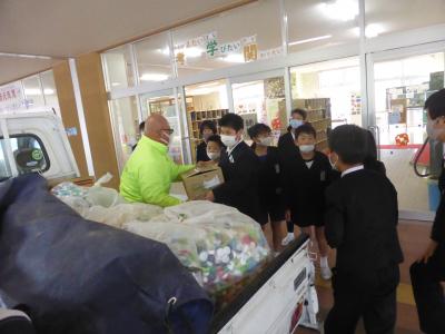 12月23日(水)、これまで皆様に集めていただいたプルタブとペットボトルのキャップを、児童会が代表して七尾市赤十字奉仕団の方にお渡ししました。プルタブは世界の恵まれない子供たちの給食代として、キャップはコロナが落ち着いた後車いす代として、役立ててくださるそうです。現在、本校はコロナが落ち着くまで回収を一旦中止しております。再開する際は、またご協力をお願いいたします。
