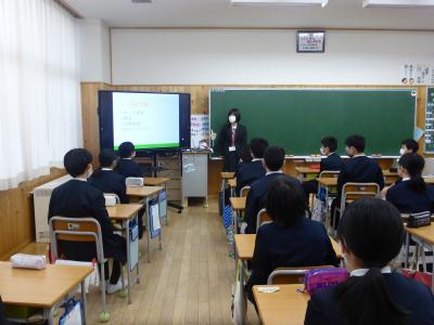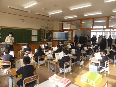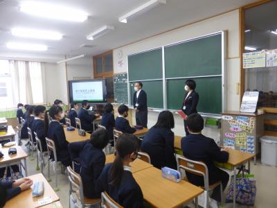 2月17日(水)七尾中学校から2名の先生にお越しいただき、中学校説明会を行いました。中学校入学にあたっての心がまえや入学後の日課等、いろいろと教えていただきました。お話を聞いた後、6年生は次から次と積極的に質問していたようです。