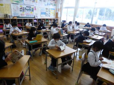 今年度は木曜日のお昼の時間に読書タイムをとっています。昼休みが終わったあと、各教室で読書を楽しんでいます。