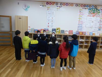 2月18日(木)、積雪のある大変寒い日になりましたが、来年朝日小学校の1年生になる年長さんをお迎えし、ようこそ集会を開催しました。1年生は年長さんに楽しんでもらおうと、感染予防を意識しながら、今できる範囲で精一杯お迎えしました。