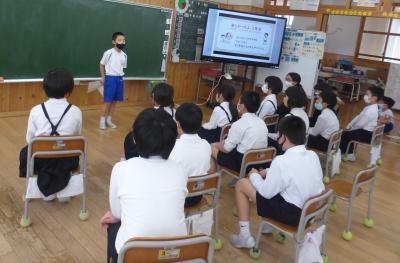 3月23日(火)、3年生が「Who are you?」の学習の劇を1・2年生に披露しました。身振り手振りを交えての熱演でした。1・2年も3年生の発表を見た感想をしっかり発表したいました。そして、この日がジェシカ先生の本校での最後の授業日となりました。3年生、ジェシカ先生ありがとう!