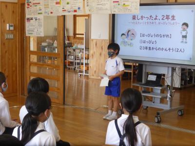 3月9日(火)2年生は3年生を招待し、楽しかったことを発表しました。2年教室と3年教室に分かれて行いました。2年生の発表の後には、3年生が感想や質問をしていました。