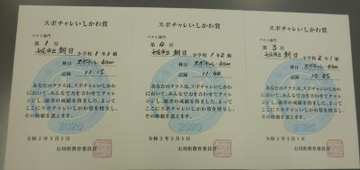 本校では、スポチャレいしかわにチャレンジしています。今年は10月に行った「あさひスポーツフェスティバル」の種目にもなった「スポチャレ・40ランキング」で上位入賞したクラスが多く出ました。スポチャレの種目は他にも「8の字跳びランキング」「シャトルボールランキング」「長なわランキング」があります。