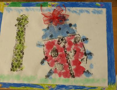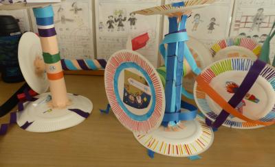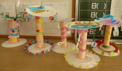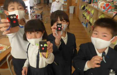 1年生は図工の時間に「すきまがだいすきなすきまちゃん」を作成し、楽しんでいました。教室へ行くとすきまちゃんを見せてくれたり、すきまちゃんがいる場所を教えてくれたり。とっても楽しそうでした。
