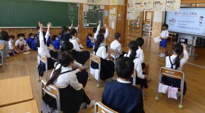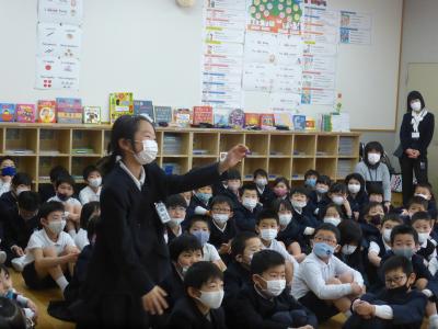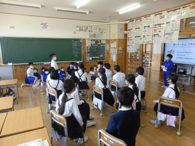 3月23日(火)、3年生が「Who are you?」の学習の劇を1・2年生に披露しました。身振り手振りを交えての熱演でした。1・2年も3年生の発表を見た感想をしっかり発表したいました。そして、この日がジェシカ先生の本校での最後の授業日となりました。3年生、ジェシカ先生ありがとう!