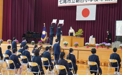 3月18日(木)天候にも恵まれ、第3回令和二年度の卒業証書授与式を行うことができました。コロナ対策のため、式への直接の参加は卒業生、保護者、5年生のみでしたが、1年生から4年生そして先生方はオンラインで式の様子を見ながら、卒業を祝い見守りました。6年生は卒業式当日も最後までしっかりやり切ってくれました。入場から退場まで、下級生の手本となる行動でした。本当に凄い‼ 5年生は在校生代表として卒業を見届け、次は僕たちの番と心新たにしたようです。