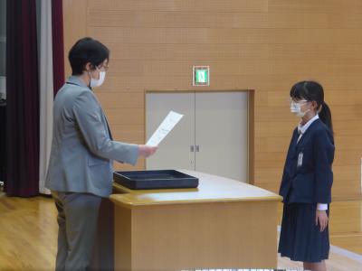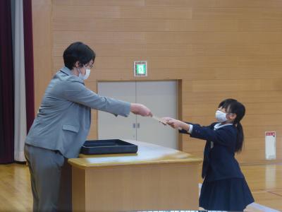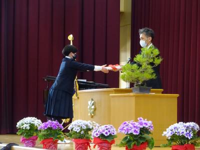 3月24日(水)令和2年度の修了式を行うことができました。学年の代表にそれぞれの学年の教育課程を修了したという証明修了証書を渡しました。どの学年も立派に受け取っていました。4月からは1歩前進ですね。