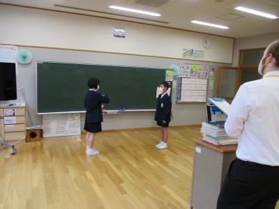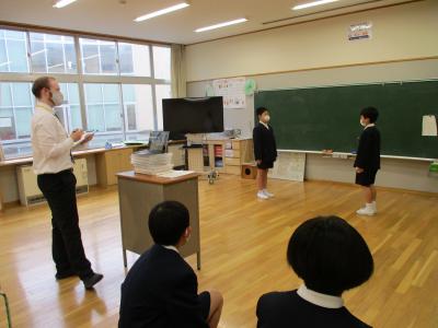 5年生はALTのケイシー先生に見守られながら、習った英語を使って会話するパフォーマンステストにチャレンジしました。なかなかの出来栄えでした。