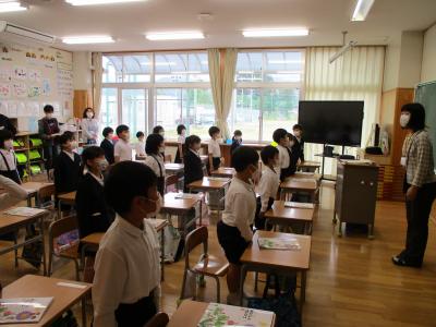 5月18日(火)幼保園の先生方が1年生の生活科の学習の様子を参観されました。1年生は、朝顔の種やお世話の様子を伝え合いました。「自分の朝の様子を見たい」と外に出たのですが、調度雨が降ってきたため、観察時間が短くなりましたが。しかし、撮影してあった写真から、芽が出る様子をしっかりと表現していました。