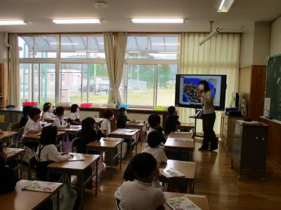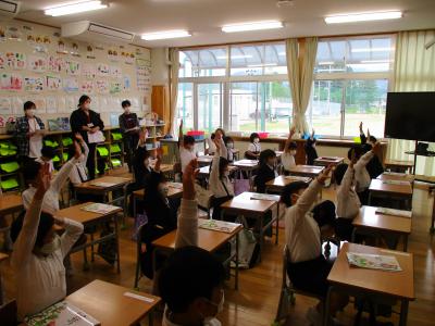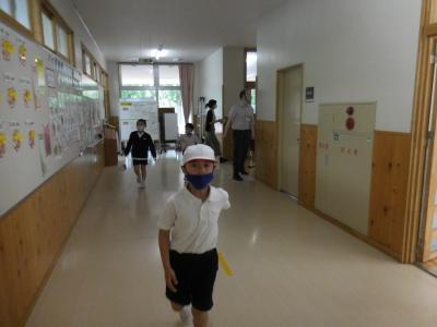 5月24日(月)の長休み、原発事故を想定した避難訓練を予告なしで行いました。休み時間でしかも予告なしの君r年できたが、放送がなるとその場でピタっと動きを止め、放送を聞き、自分で考え行動することができました。