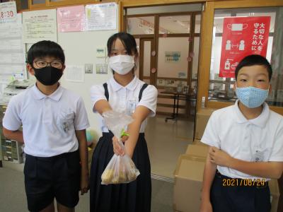 6月24日、6年生がじゃがいもをプレゼントしてくれました。理科の実験で使用し、残ったじゃがいものようです。