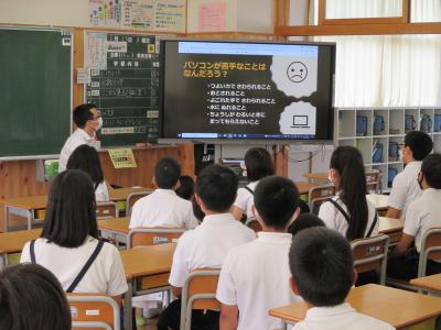 その後、状況に応じてパソコンを動かしている各教室の姿から、「パソコンを濡らしてはいけない。大切に。」という思