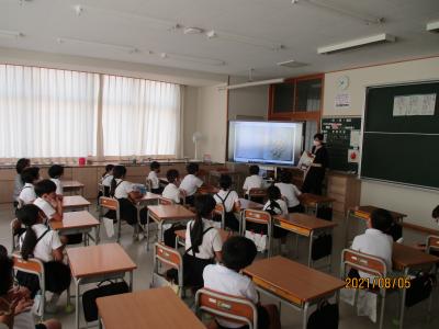 8月5日(木)全校登校日でした。オンラインによる集会、平和集会を実施しました。その後、各教室で平和に関する読み聞かせなどが行われました。