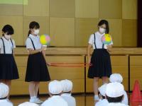 9月14日(火)クラブ活動がありました。運動クラブに,国下町の小杉啓介さんが来てくださり、ハンドベースボールの指導をしてくださいました。子どもたちはとても楽しく学べたようです。