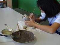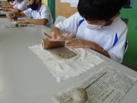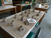 9月24日(金)5年生は「山びこ荘」で陶芸教室を行いました。粘土の固まりを伸ばし形にし、世界に一つだけのカップや皿をつくり上げました。1カ月後に焼きあがって届く予定です。楽しみですね。