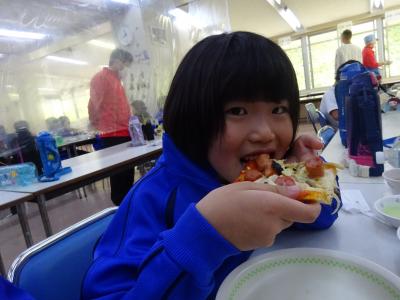 食べた子どもたちの第一声は,「おいしい~」でした。ピザのほかにスープ・ゼリーもいただき子どもたちはおなかいっぱいとても満足そうでした。